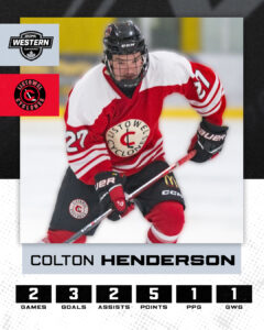 The 3rd-year forward from Wellesley had a pair of multi-point games in two wins for the Cyclones to close out 2025. He scored twice — including the game winner — in Thursday’s 4-2 win in Sarnia, then scored a goal and two assists in a 4-1 win over LaSalle on Friday. He has 17 points in 17 games since rejoining the Cyclones in October. Colton joins Lyndon Cabral as the second Cyclone to be selected as a Performer of the Week this season.